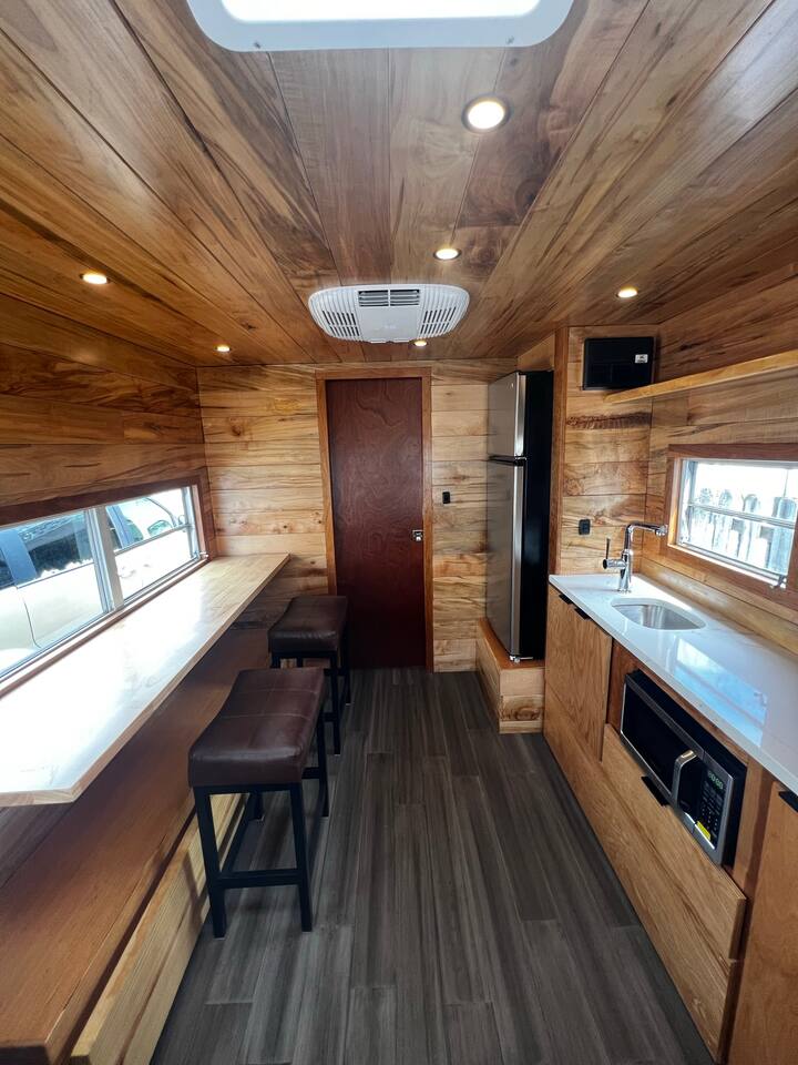Welcome to our remodeled camper, where comfort meets adventure! This stylish oasis on wheels offers a perfect blend of modern amenities and rustic charm, making it the ideal getaway for couples or solo travelers. Inside, you'll find a cozy full-size bed, granite counters in the kitchen and the bar seating is perfect for enjoying your morning coffee or a quick snack. Our camper boasts a full-size shower and toilet, ensuring you have all the comforts of home while you're on the road!